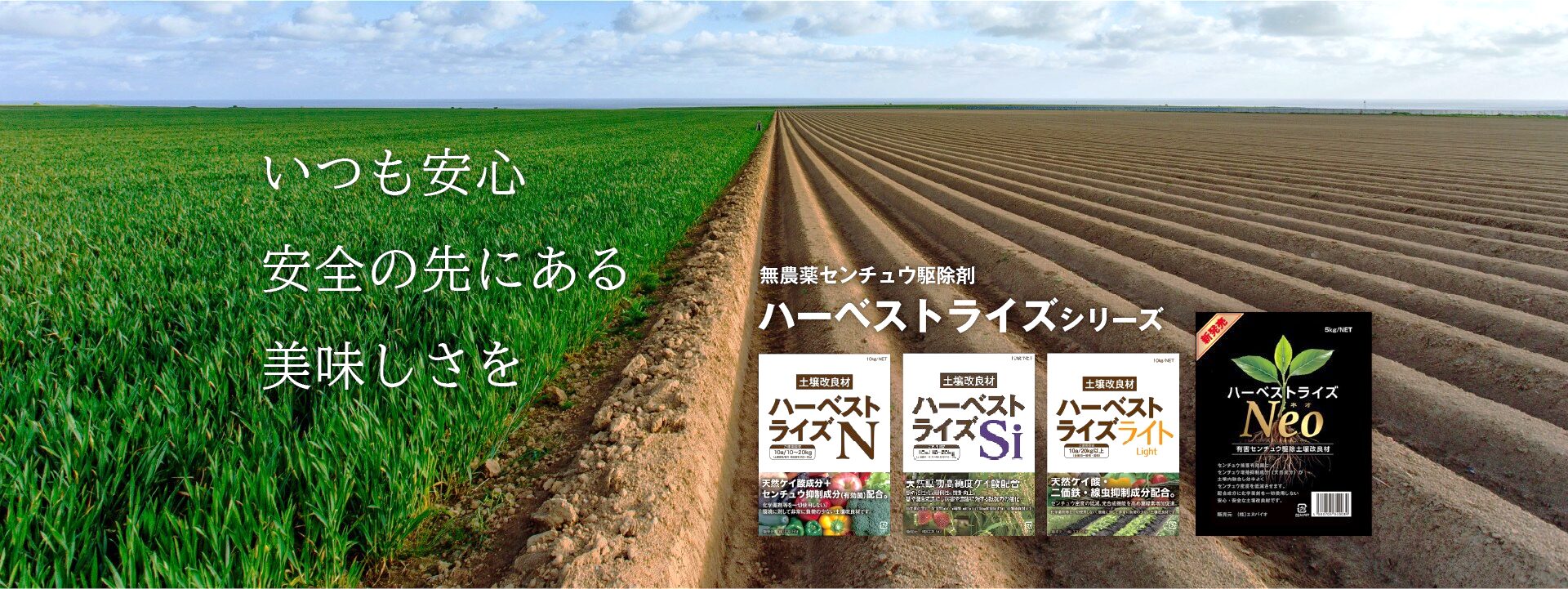弊社ハーベストライズシリーズは配合成分に農薬や化学薬剤を一切使用せず、土壌有害センチュウに立ち向かう新しいセンチュウ対策資材です。